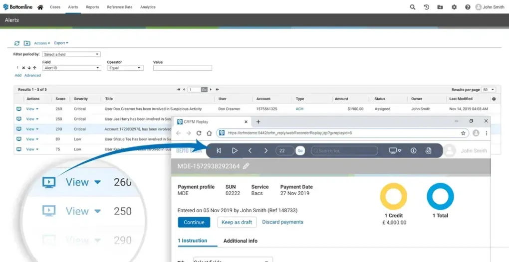 Bottomline automatically puts transactions on hold, allowing suspicious events and high-risk payments to be examined in the Alert Investigation Center. Connect the dots easily between users, accounts, transactions, and a plethora of data to get a fuller understanding of the risks. Once the investigation is complete and funds are verified, analysts can release funds or block them if determined fraudulent.