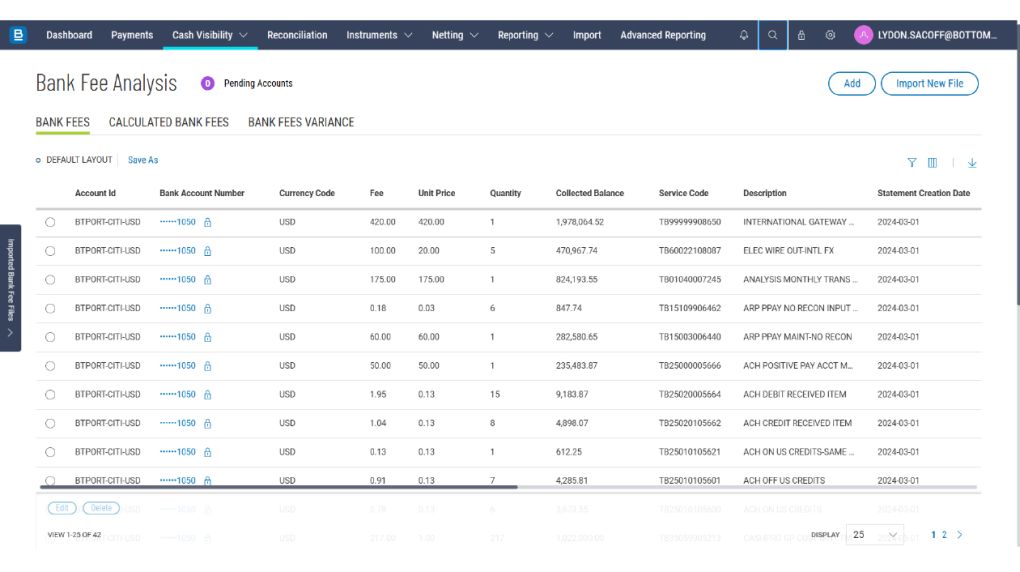 Bank fees can be opaque and inconsistent. Bottomline’s fee analysis tools give you visibility and control over what you’re being charged.