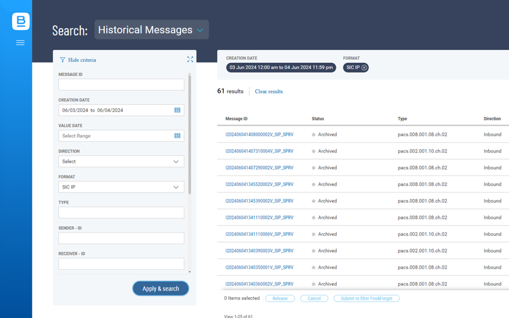 Meet audit requirements with a central repository of financial messages, enabling organizations to instantly aggregate, search, and retrieve transactions across multiple payment schemes​.