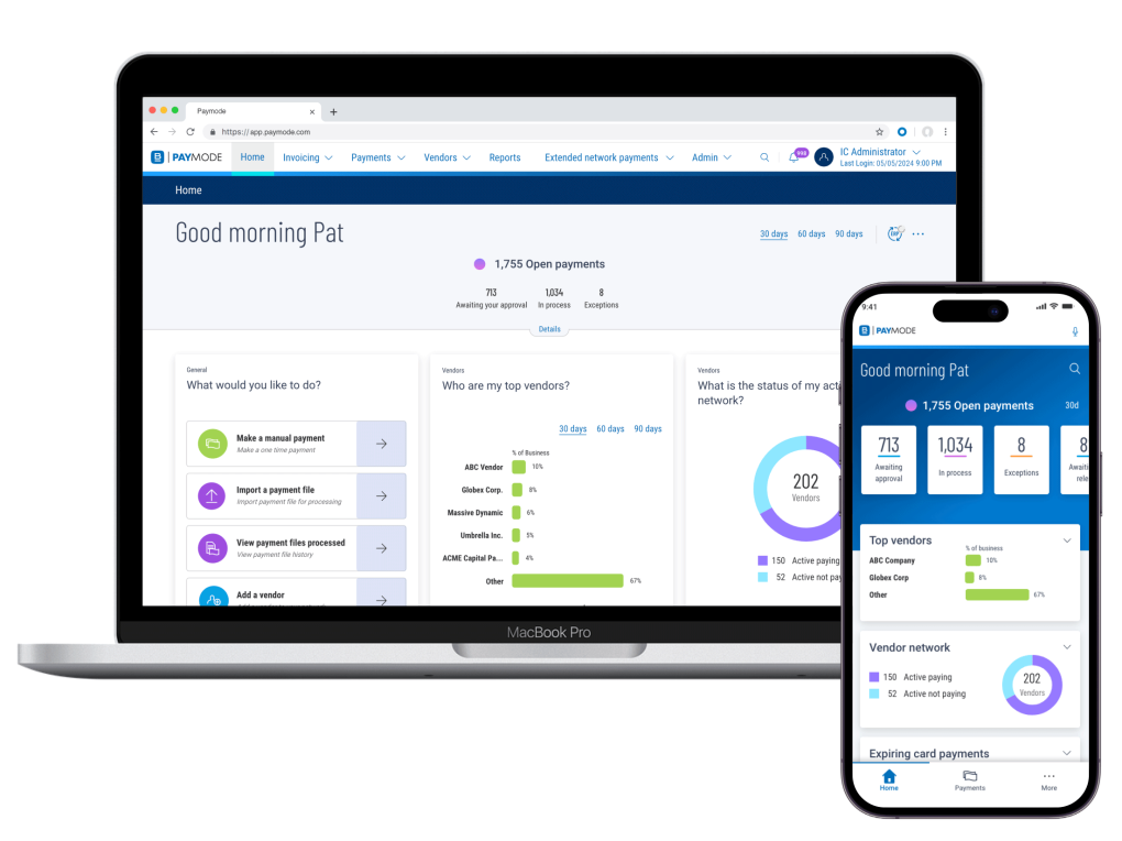 More than 600,000 vendors accept Paymode electronic payments, like Premium ACH. Plus, we automatically offer electronic payments to vendors who accept checks with an explanation of benefits for switching.