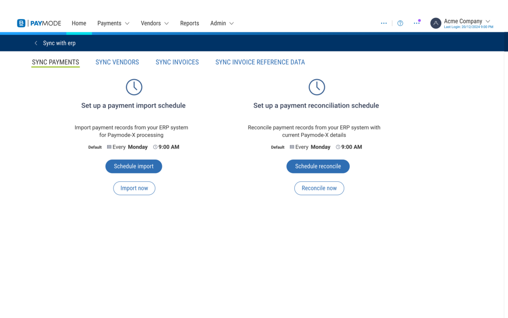Connect your ERP with Paymode directly using published APIs.
