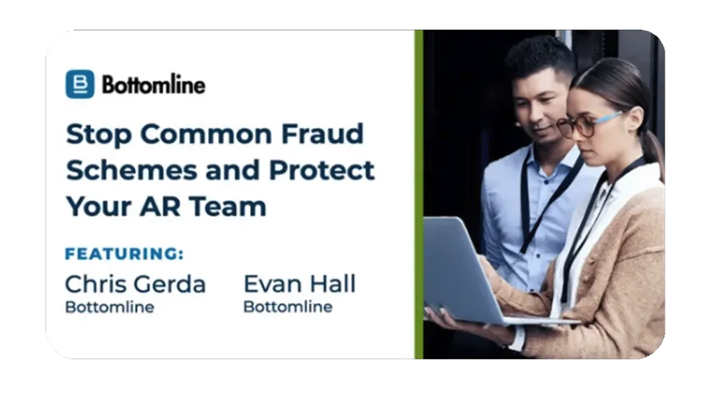 Protecting your business against fraud can be complex and time-consuming, especially if you don't know what to look for. Knowledge really is power when it comes to keeping your B2B payments safe. Join our Bottomline experts Chris Gerda and Evan Hall in our upcoming webinar to learn the common red flags associated with fraud, real-life examples of how other businesses have been impacted and what you can do to protect your business. Don't miss the opportunity to secure your accounts receivable team and larger organization against Business Email Compromise, check theft and other common, damaging fraud schemes.
